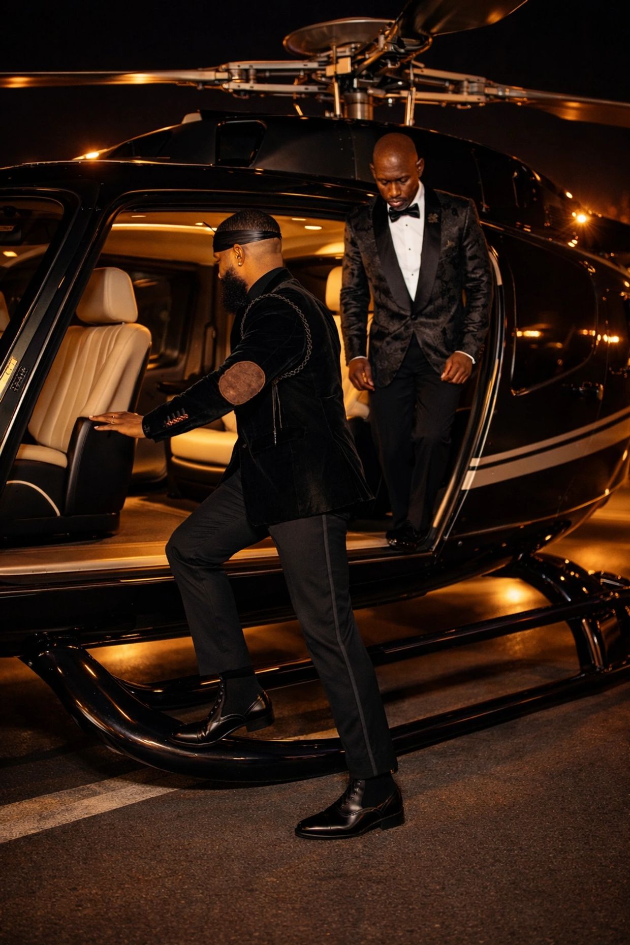 Bespoke ceremonial tuxedos and tailcoats constructed for state occasions, private celebrations, and formal environments — including weddings — where presence is required.